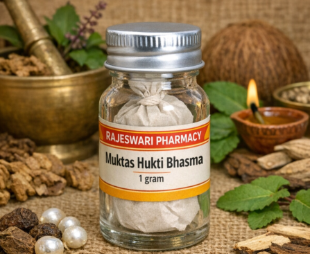 Muktas Shukti Bhasma is a classical Ayurvedic calcium-rich formulation prepared from purified pearl oyster shell (Shukti). At Rajeswari Pharmacy, this traditional medicine is processed according to authentic Ayurvedic methods to ensure purity, potency, and safety. What is Muktas Shukti Bhasma? Muktas Shukti Bhasma is obtained by purifying and calcining oyster shells through a traditional Marana […]