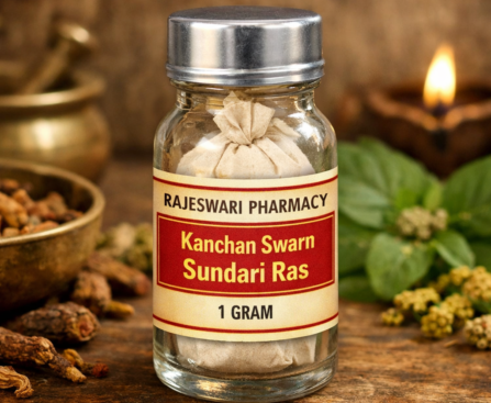 Kanchan Swarn Sundari Ras by Rajeswari Pharmacy is a classical Ayurvedic formulation known for its powerful rejuvenating and vitality-enhancing properties. Prepared according to traditional Ayurvedic principles, this herbal-mineral medicine is formulated to strengthen the body, improve immunity, and support overall health and stamina. for contact whatsap call6284854469 Key Ingredients Kanchan Swarn Sundari Ras is made […]