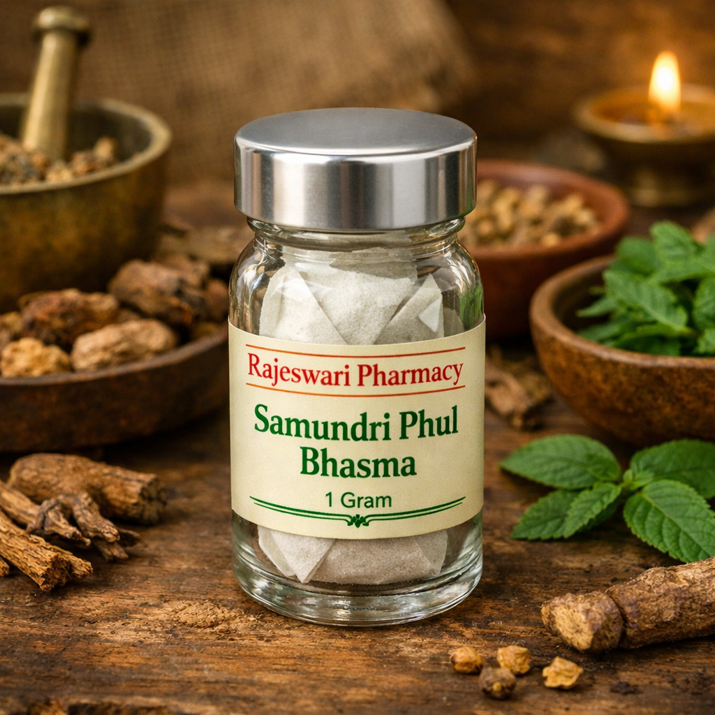 Samundri Phul Bhasma by Rajeswari Pharmacy is a natural remedy rooted in Ayurveda, offering benefits for digestive health, bone strength, and overall wellness. With proper guidance, it can be a valuable addition to holistic healthcare.